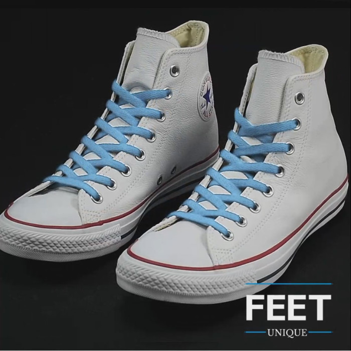 Te recomendamos mantener la simpleza con estos cordones azul claro. Combínalos con tonos clásicos de blanco o gris para una combinación sutil pero llamativa.