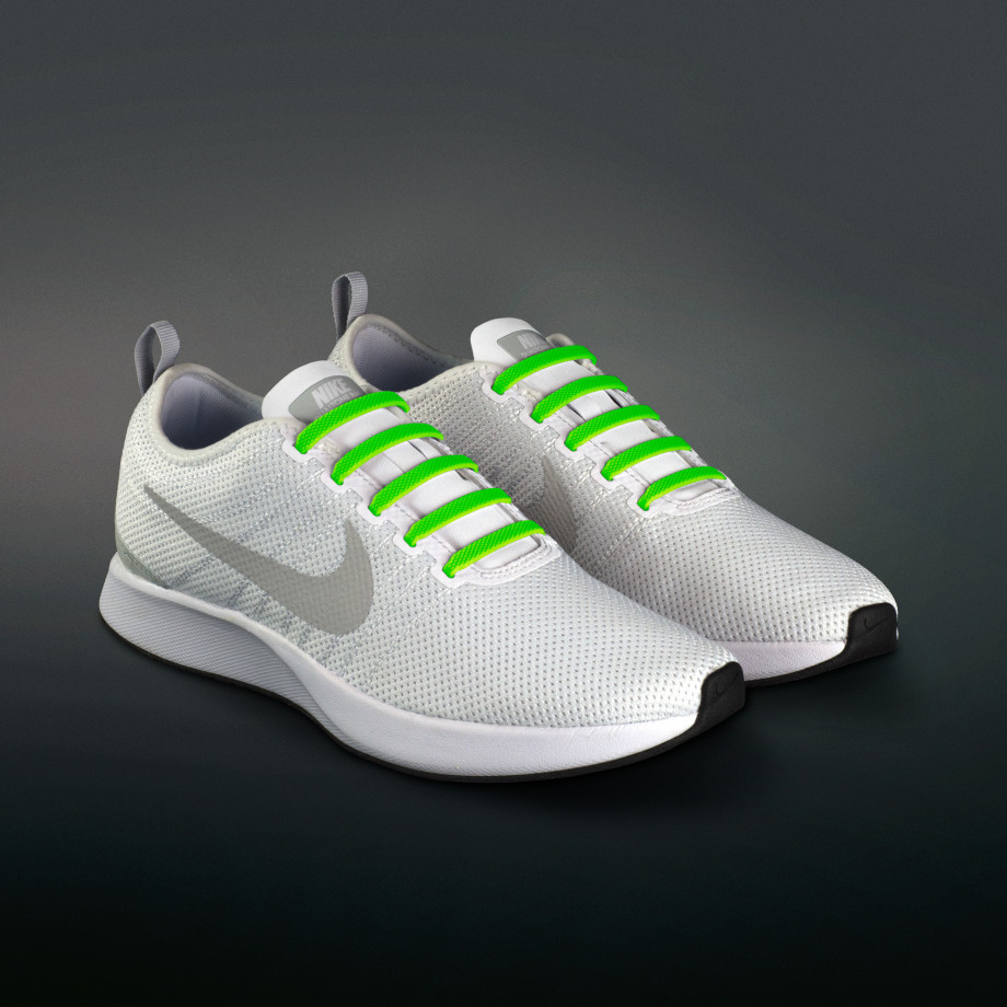 Cordones elásticos de silicona verde neón que transformarán tus zapatillas en unas slip-ons.